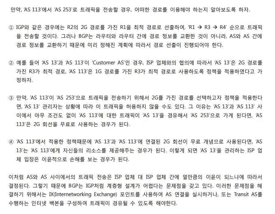 - AS와 AS 간에 라우팅 정책이 필요한 경우